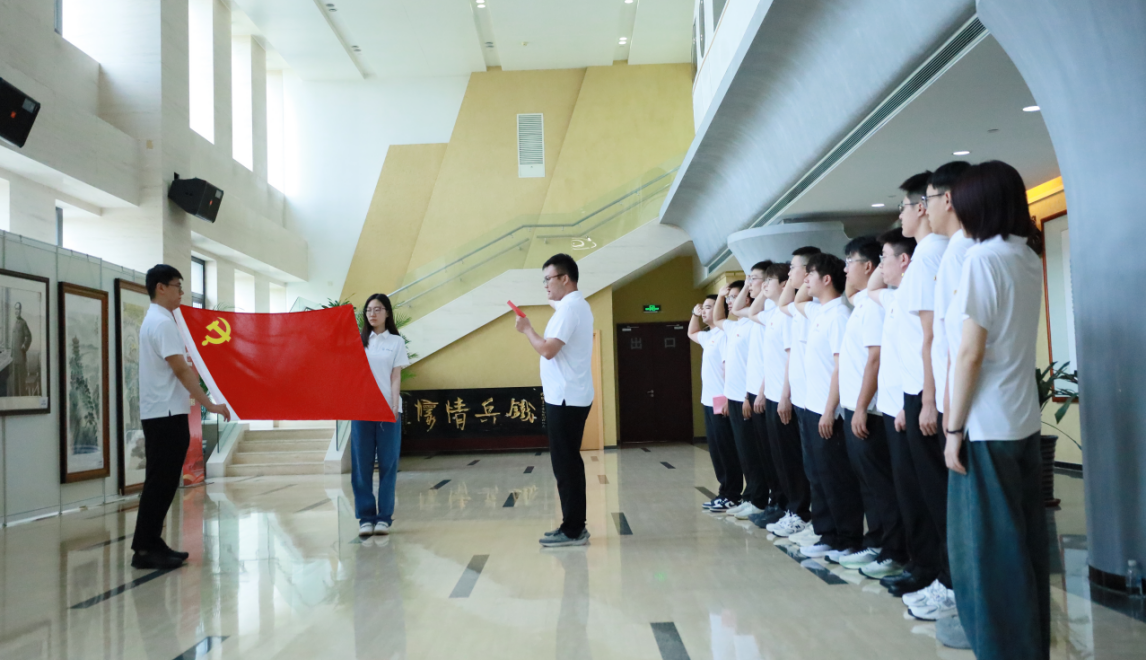 面對鮮紅黨旗,12名黨員高舉右拳,誓言錚錚,與展館內“鋼鐵脊梁”的浮雕交相輝映。從“打不爛的鋼鐵運輸線”到“一帶一路”的現代工程,黨員們接過的不僅是技術,更是精神的火炬。莊重的宣誓儀式進一步強化了政治儀式感,通過“情景體驗+誓言重溫”的創新形式,實現了歷史記憶與當代使命的有機銜接,使青年黨員在思想深處筑牢了“兩個維護”的政治自覺,切實提升了黨性教育的穿透力和感染力。