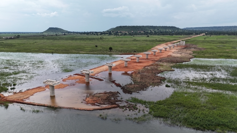 馬河橋是跨越馬拉加西加河的唯一通道,是連接標軌六標項目東西兩段線路的核心節點,直接決定著全線鋪軌工期進度安排。該橋梁全長433.5米,需架設68片預制梁,不僅要滿足坦桑尼亞鐵路遠期貨運與客運的通行需求,還要應對當地雨季洪水頻發、河岸地質松軟的復雜環境,從基礎施工到梁體預制,每一道工序都是對施工精度與技術實力的嚴苛考驗。