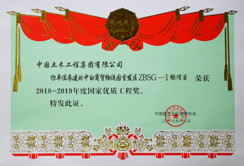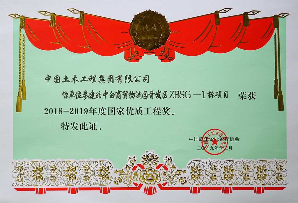 中白商貿(mào)物流園首發(fā)區(qū)ZBSG-1標(biāo)項(xiàng)目獲得2018-2019年度國(guó)家優(yōu)質(zhì)工程獎(jiǎng)